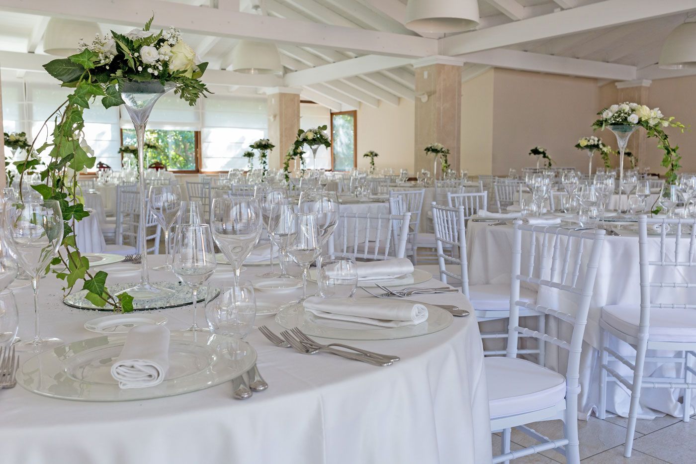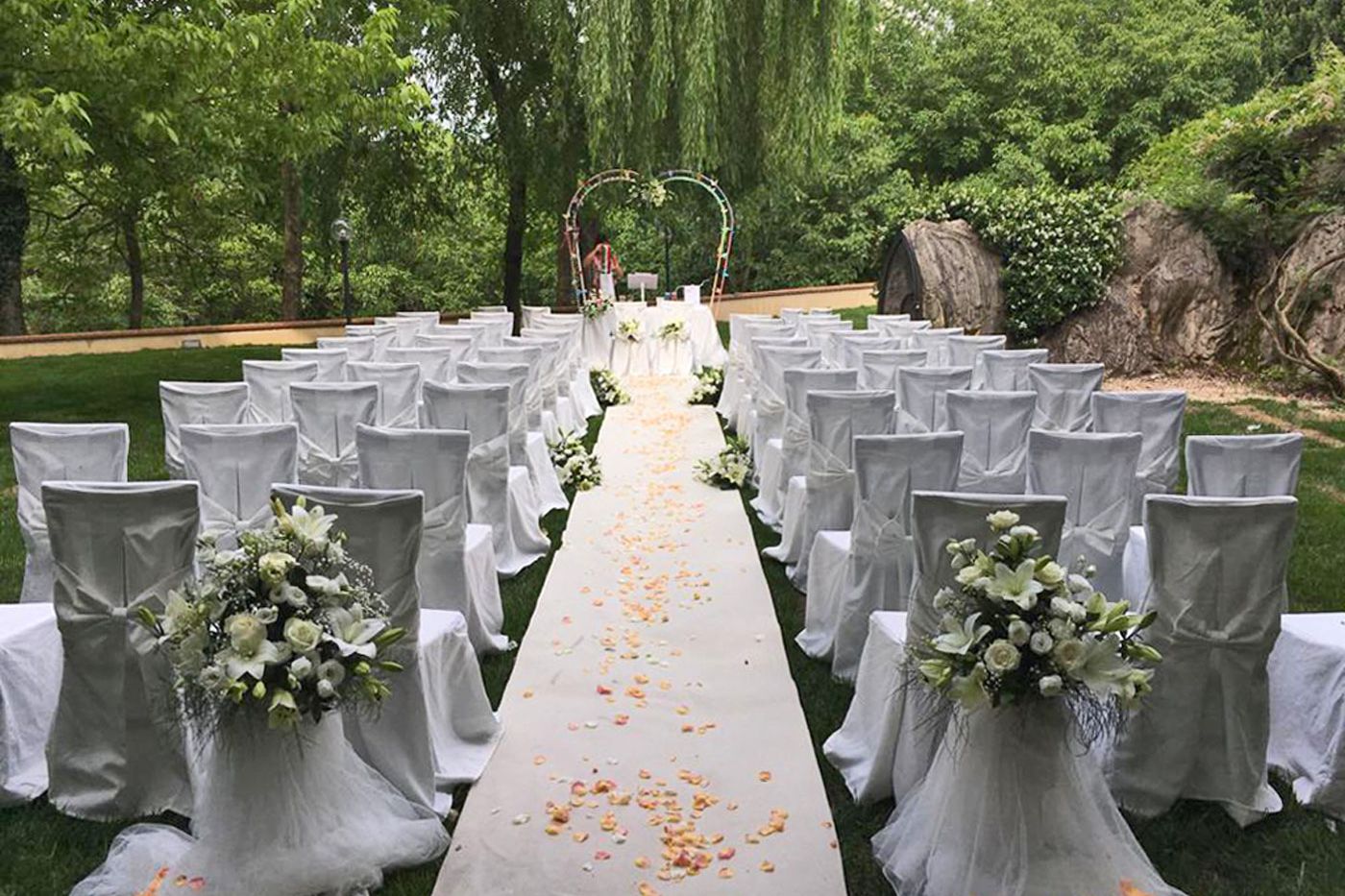 Two old houses surrounded by fountains and gardens. The halls are furnished with elegance and style, are equipped with every comfort. The Marchesi Hall can accommodate 150 guests, while the Girardet Hall up to 300. Nothing will be left to chance and every detail is attended to with the attention it deserves, because in your special day is important that everything is perfect.